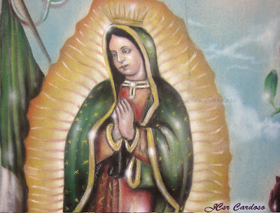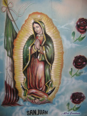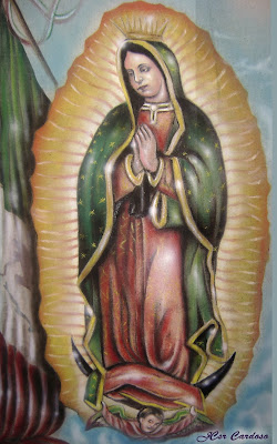 Dibujando a virgen de Guadalupe en Óleo sobre tela