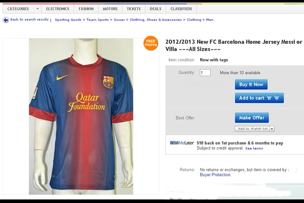 En las imágenes que ofrece eBay, la camiseta aparece sin la bandera catalana en la parte trasera del cuello; situación poco común, puesto que en pasadas ediciones la «senyera» como es llamada la bandera catalana siempre ha estado ubicada en la parte del cuello en los diferentes jerseys del Barça