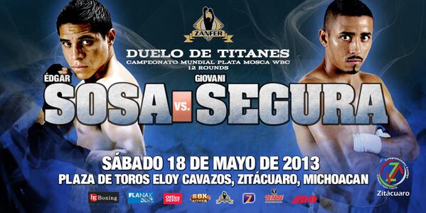 Sosa vs. Segura, combate que tendrá en juego la diadema Plata del Consejo Mundial de Boxeo (WBC, por sus siglas en inglés), en la división de mosca, es el platillo principal de la velada denominada “Duelo de Titanes”.