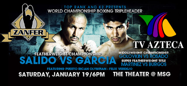 [Vf].- El duelo entre Salido y García será el estelar en la función que se realizara en El Madison Square Garden de Nueva York, en una cartelera que incluye otros combates de campeonato mundial. Salido promete guerra en el ring.